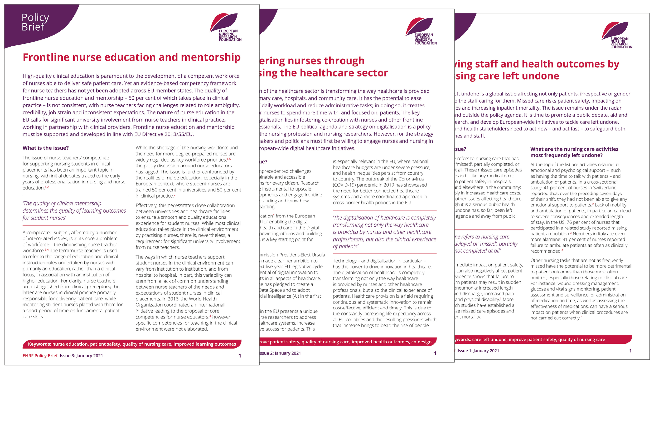 The European Nursing Research Foundation (ENRF) works to enhance nursing research to benefit Europe's citizens and to promote evidence-based decision-making. We updated the foundation's logo and publication designs, and created new templates and brand guidelines. The new designs ensured the ENRF's messages to policy makers and nurse leaders stood out, while the brand guidelines and refreshed templates ensured clarity and consistency.